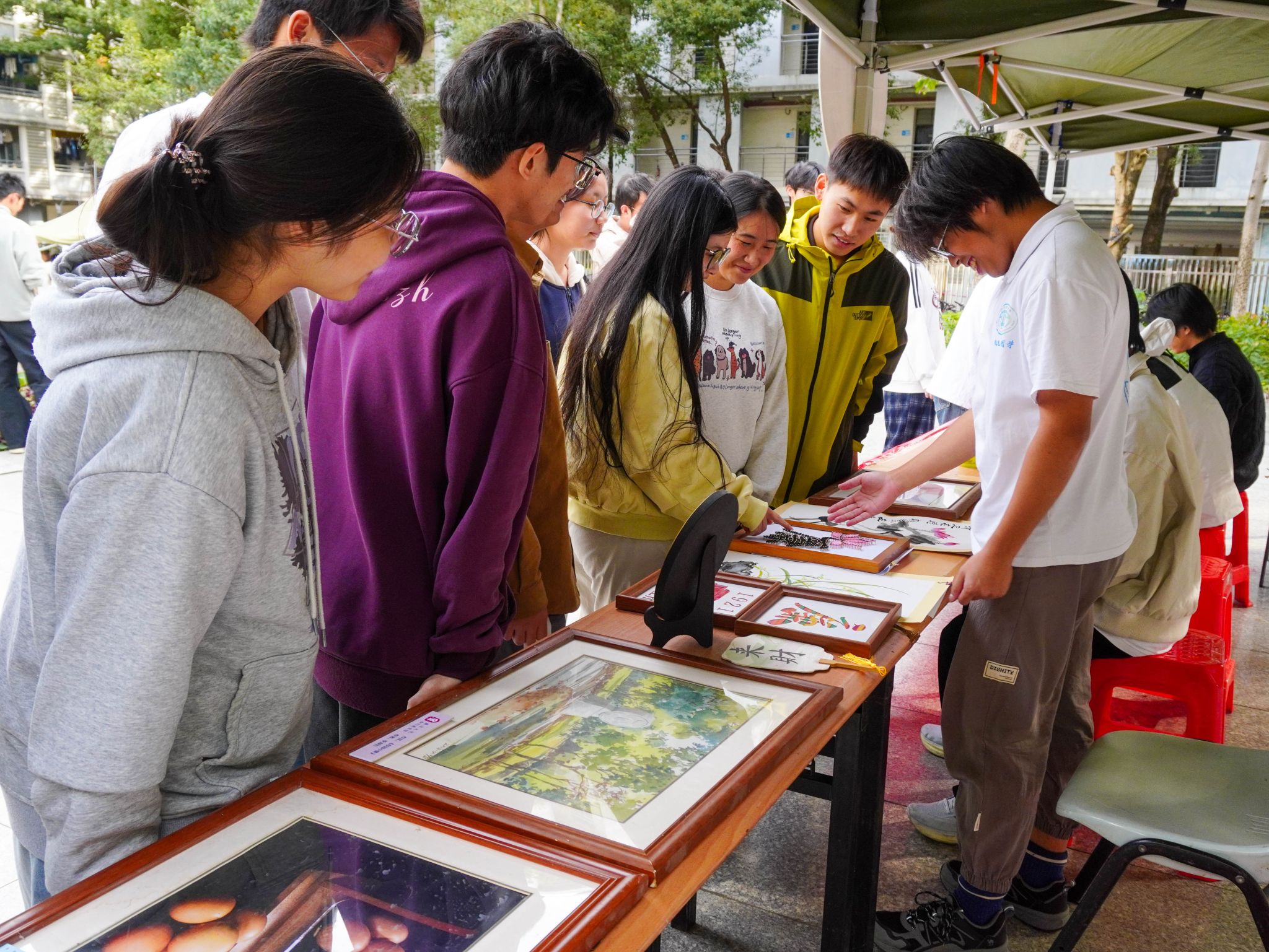 活动采用集章激励机制,同学们完成各摊位指定活动即可获得印章,集齐三个及以上印章便能参与抽奖,现场参与热情高涨。