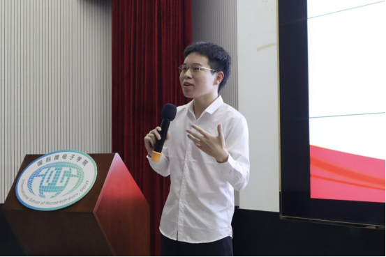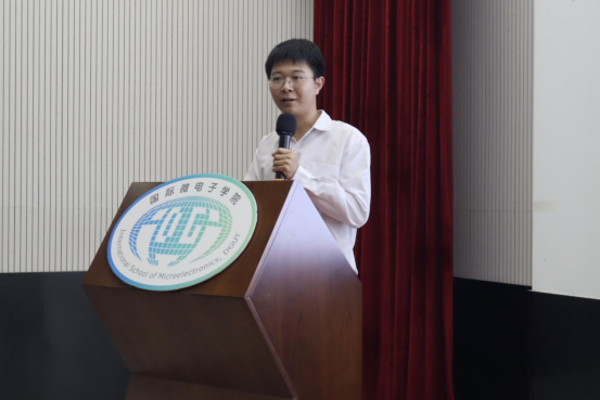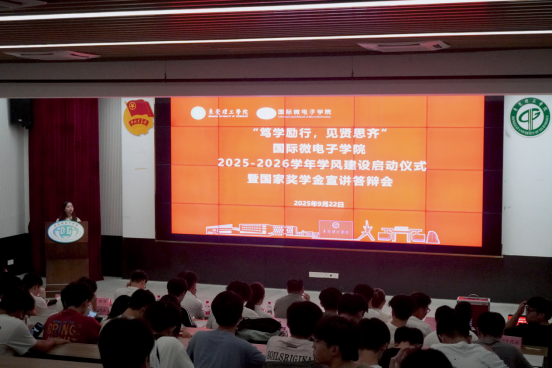 学风建设,榜样领航。2025年9月22日,“笃学励行,见贤思齐”国际微电子学院2025-2026学年学风建设启动仪式暨国家奖学金宣讲答辩会在学生活动中心A109举行。学院党委副书记翁炎泉、副院长赵晓芳、院长助理罗安信、电子系系主任杨阳、教务员康璐俐、辅导员卢楚韵、陈亚莉、车梦瑶、贾彬、魏锋,各年级学生代表、受表彰学生代表以及8位国家奖学金候选人参加,共同见证新学年学风建设的启航,聆听国家奖学金候选人的精彩宣讲,感受榜样的磅礴力量。
