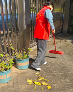在劳动现场,处处可见同学们忙碌的身影。大家热情高涨,干劲十足。有的同学手持扫帚、簸箕,清扫路面落叶和垃圾,有的同学处理路面积水,大家分工明确,配合默契,充分发扬了不怕脏、不怕累的劳动精神。
